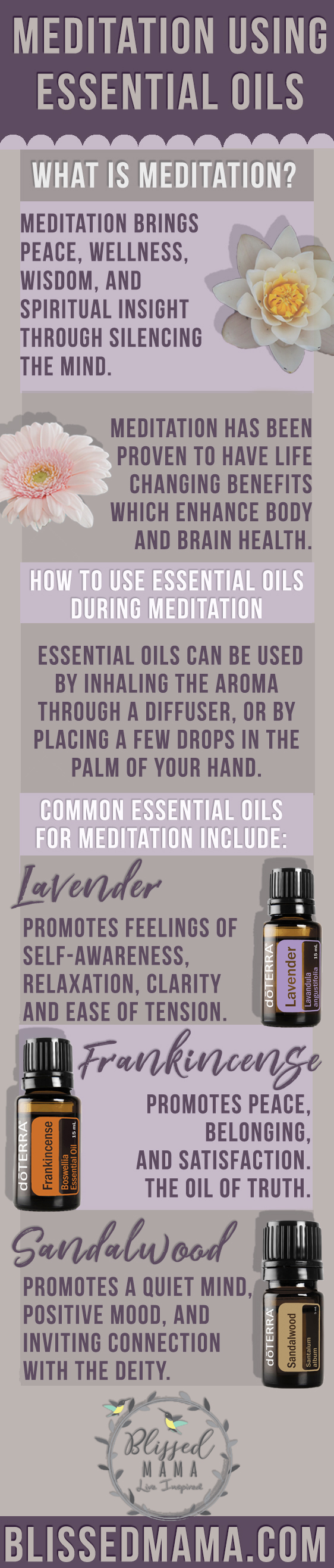 First, essential oils support your physical body during meditation by opening airways and increasing mental alertness and focus.