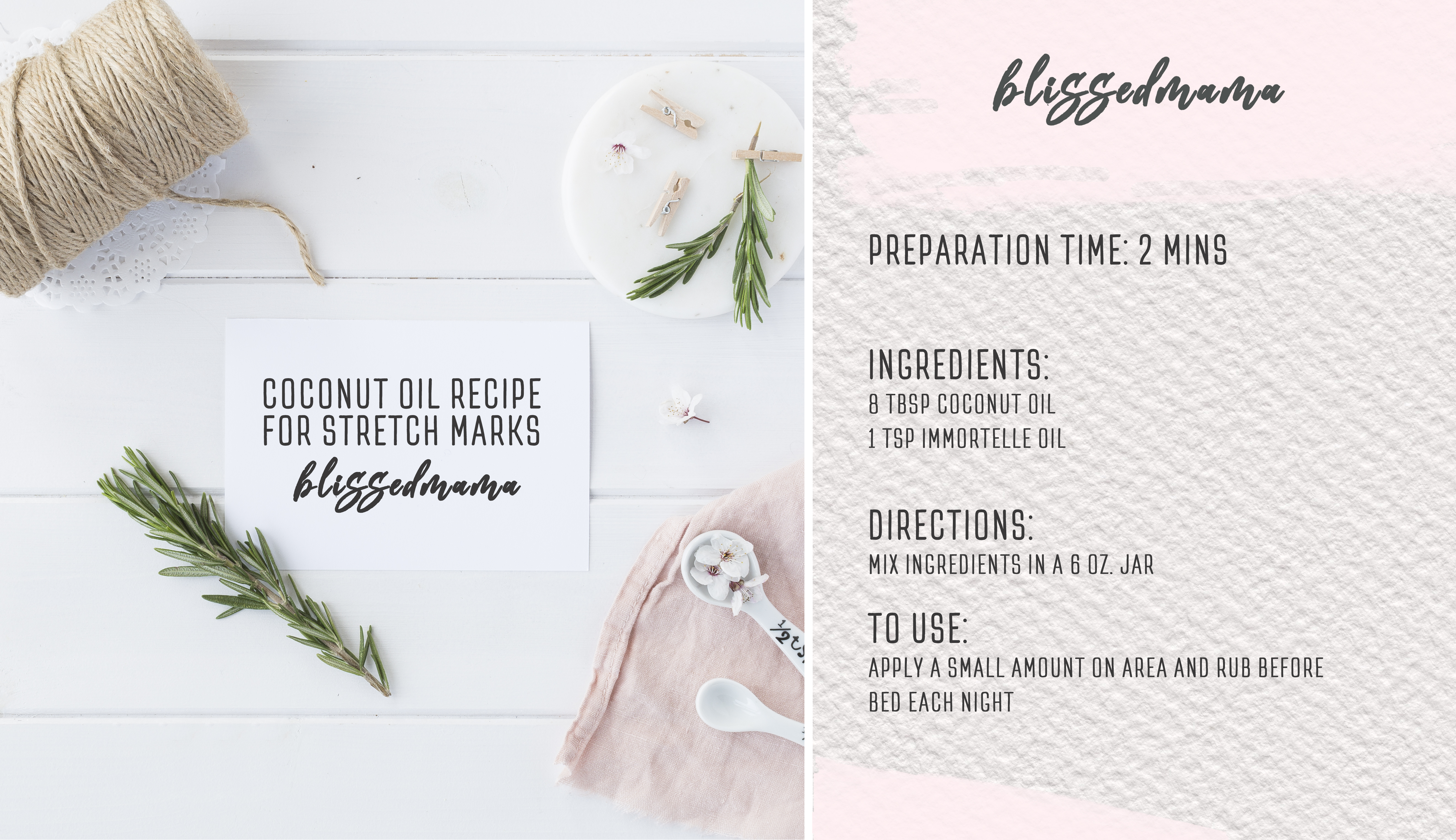 Since I made the choice to make my home as toxin-free and natural as possible, I put together my own homemade recipe with simple ingredients that are good for my body and my baby. So if you’re wondering, does coconut oil help with stretch marks? The answer is yes! I committed to doing this everyday throughout my pregnancy and today, I’m scar-free! Here’s my recipe: