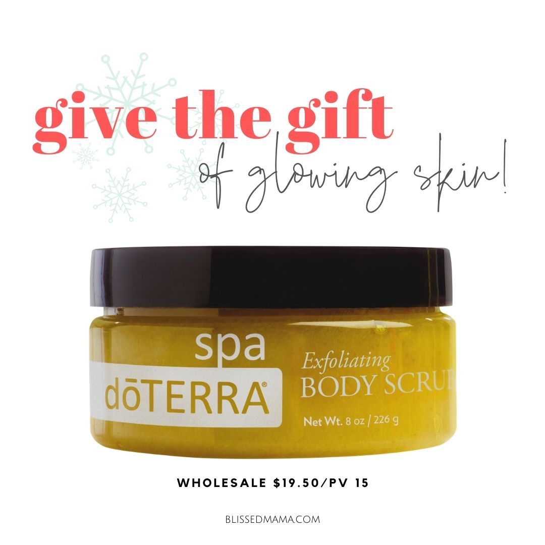 Another option from the spa line is this body scrub. This scrub is infused with Wild Orange, Grapefruit, and Ginger essential oils. It is great for gently exfoliating and polishing the skin.