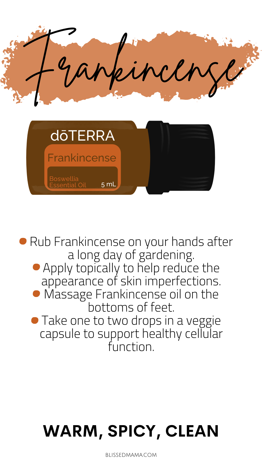 Frankincense is known as the “king of oils”, it is renowned as one of the most prized essential oils. Spend enough time around essential oil people and you will hear the phrase, “when in doubt, use Frankincense. Frankincense can be used to improve the appearance of skin imperfections and it can also be used in a veggie capsule to support healthy cellular function. It is known for supporting healthy cellular, immune, nervous, and digestive function when used internally. It can also be diffused to create a peaceful and satisfying aroma.