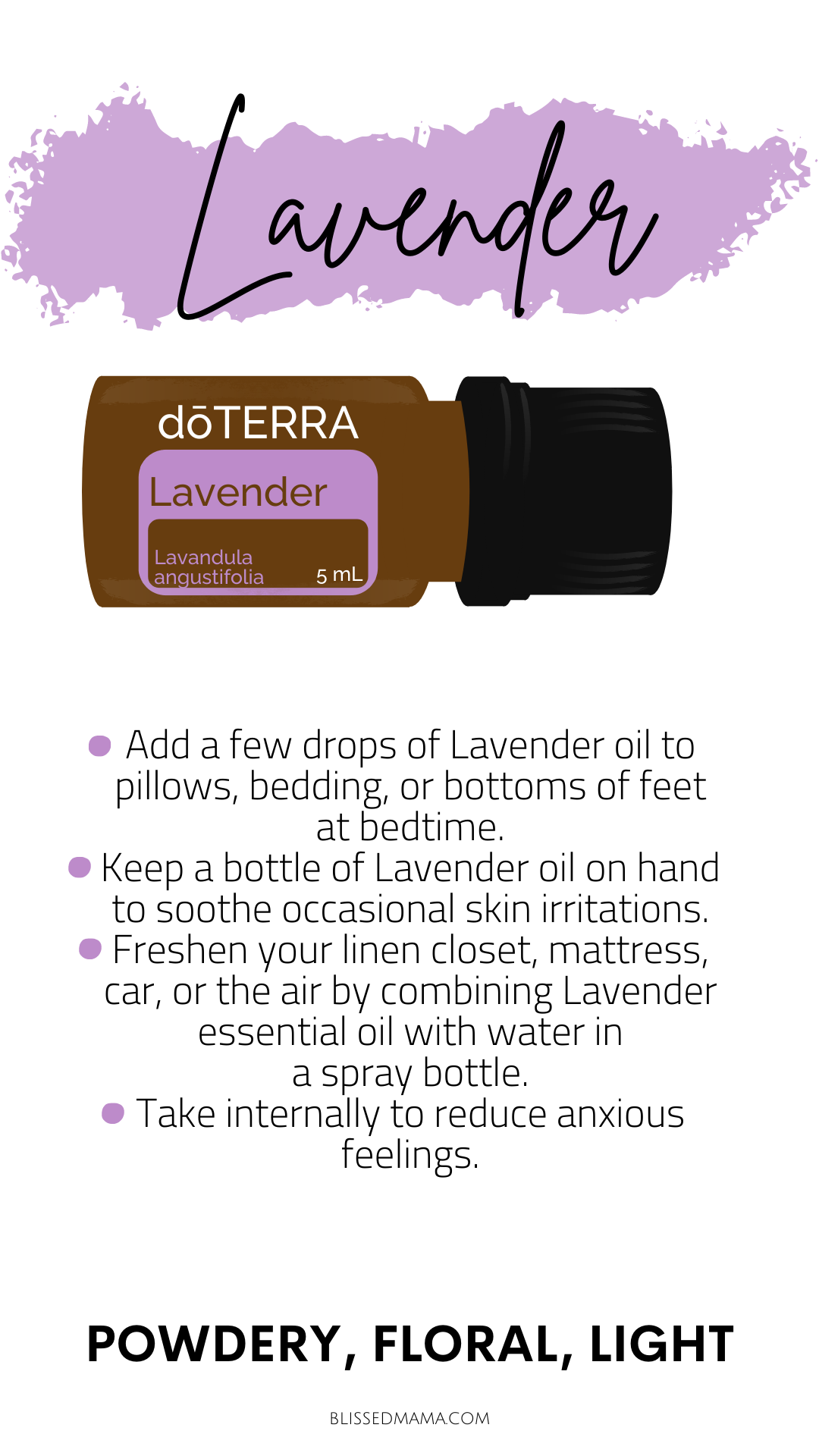 Lavender is a must have essential oil. It is versatile and have a plethora of uses and when diffused it creates a peaceful aroma. Lavender can be used for soothing mild skin irritations, promoting restful sleep, reducing anxious feelings, ease feelings of tension, and so much more. It can be added to bath water to soak stress away or applied to the temples and back of the neck to ease head tension. It can also be added to your laundry detergent when washing your bedding. There are so many ways Lavender can be used that I believe everyone needs this essential oil in their home.