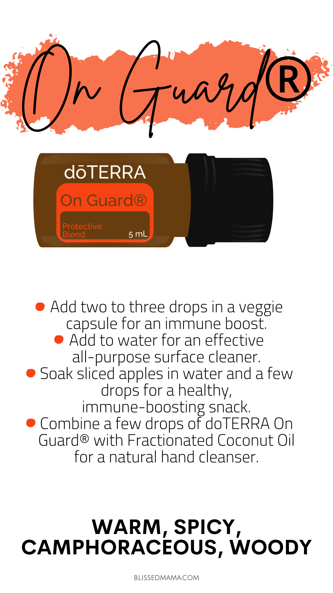 On Guard is doTERRA’s protective blend. This is one of doTERRA’s most popular oils and for good reason. On Guard supports healthy immune function when used internally, it also contains powerful cleansing properties. On Guard can be used to protect against environmental and seasonal threats. It can also be used as a powerful non-toxic surface cleaner in your home. Using On Guard in a diffuser can helps to purify the air in your home as well.