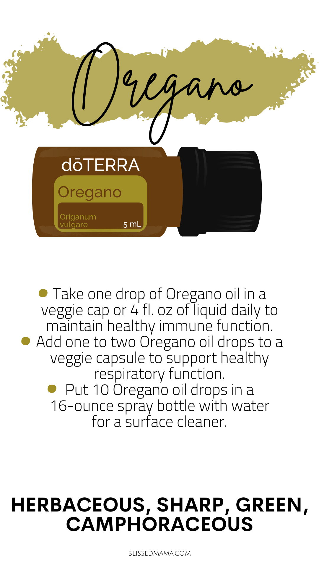 Oregano is known as a spice, often used in cooking, but did you know it contains powerful cleansing agents as well? Oregano has many uses that extend outside of the kitchen and it offers powerful antioxidants. According to doTERRA’s website, “The primary chemical component of Oregano is carvacrol, a phenol that possesses antioxidant properties when ingested.” It is recommended that Oregano be diluted with a carrier oil when being applied to the skin. Oregano can be taken internally to support healthy digestion and respiratory function.
