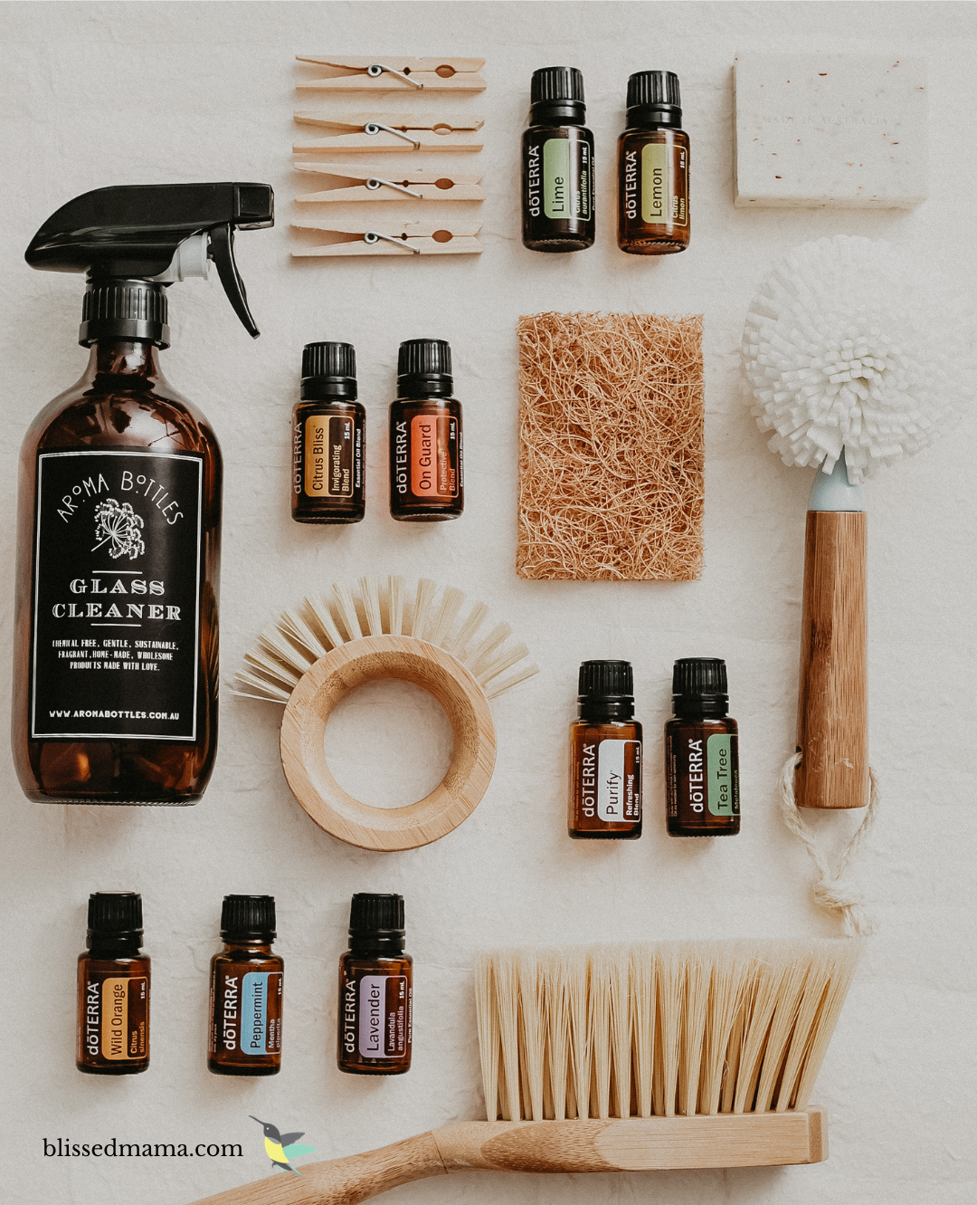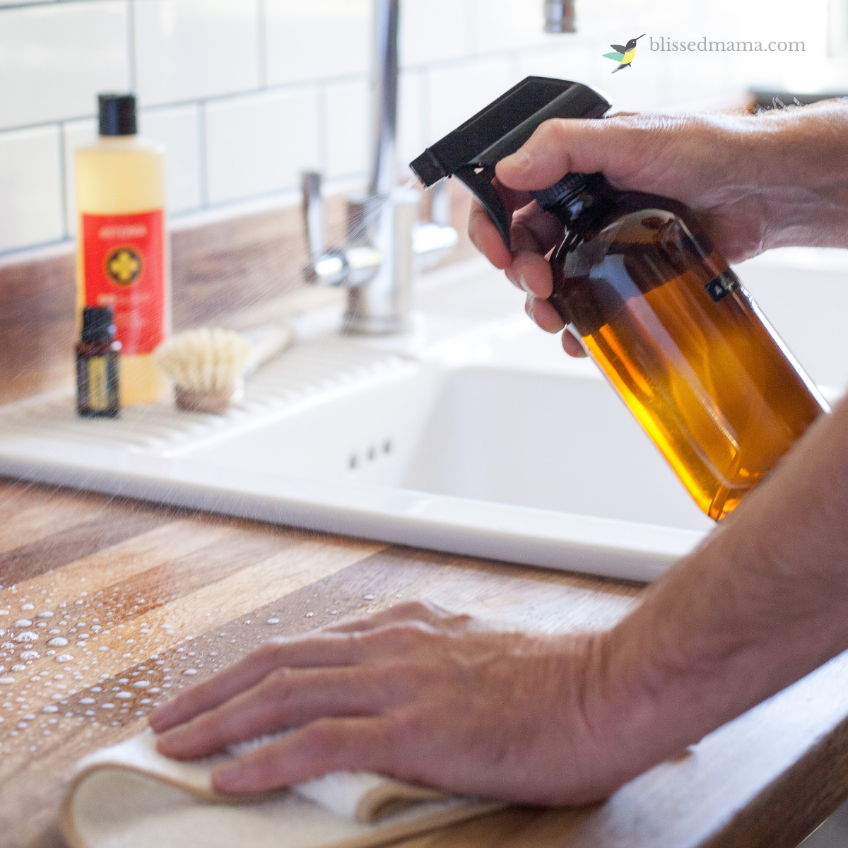 I like using lemon oil (about 10 drops) in this cleaner. Lemon essential oil has a really uplifting smell, it is also the oil of focus and it smells clean.