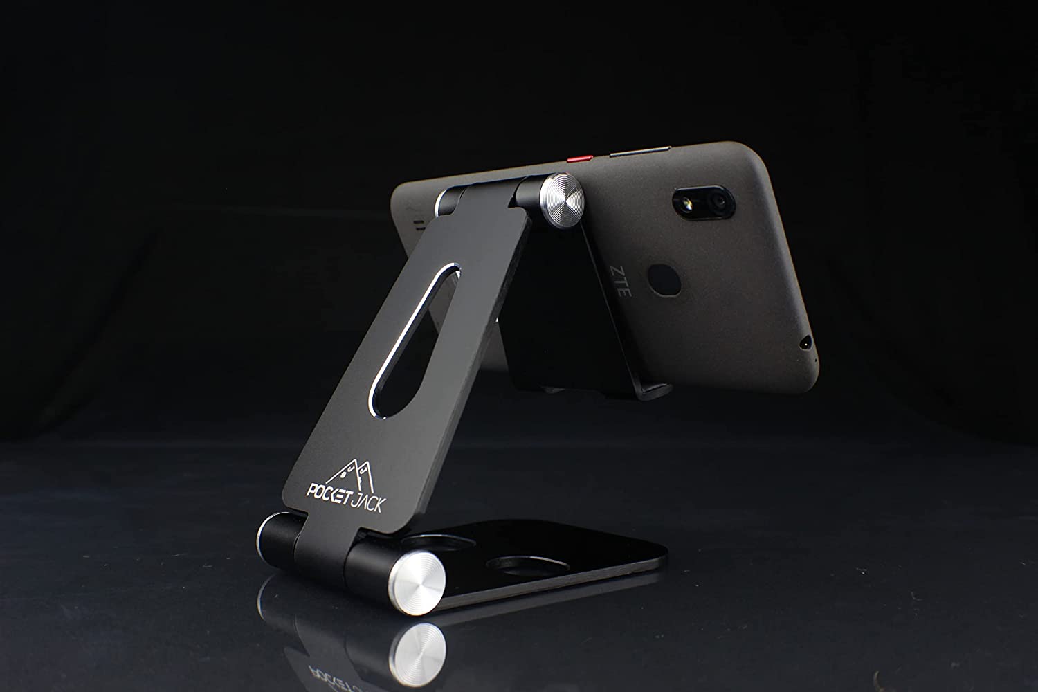 I recently found this awesome tool that I use to keep my phone and tablets at eye level. It is called a Pocket Jack. Pocket Jack is a sleek, beautifully designed phone holder that can hold both your phone and your tablets in a way that will keep your electronics at eye level. This is the perfect solution for minimizing the strain placed on your neck from constantly bending your neck down.