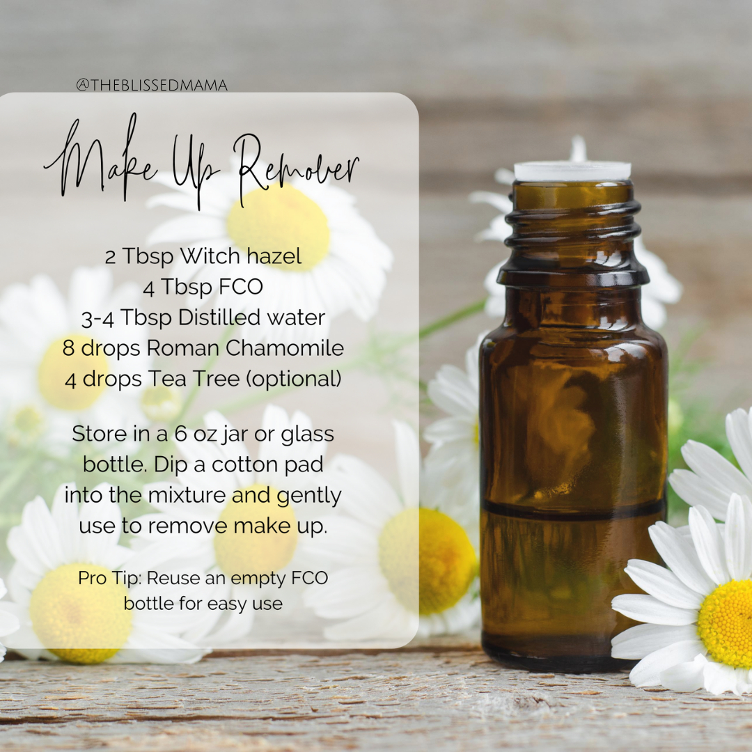 Store in a 6oz jar or glass bottle. Dip a cotton pad into the mixture and gently use to remove make up.