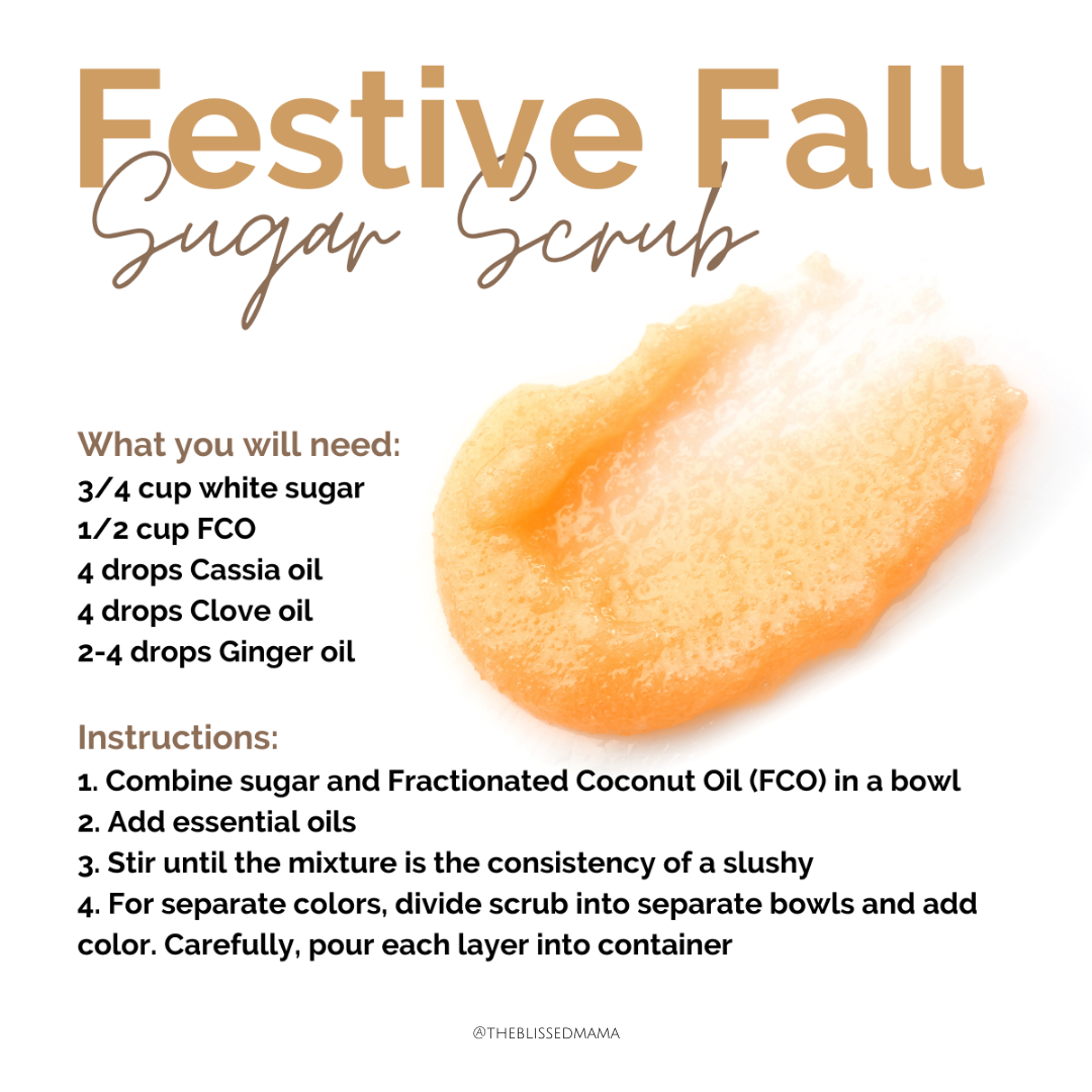 The final oil I'm going to share with you is Harvest Spice. This oil is only available for a limited time each year. This oil is the gathering blend; it smells exactly the way you’re imagining. This oil is a proprietary blend of Cassia, Clove, Eucalyptus, Cedarwood, Nutmeg, and Cinnamon. This is another oil that could be turned into a room spray if you would rather use this than the other blend listed above. The same goes for the sugar scrub recipe, just swap out the other essential oils and add this one. This is definitely one of my favorite limited-edition oils of all time.