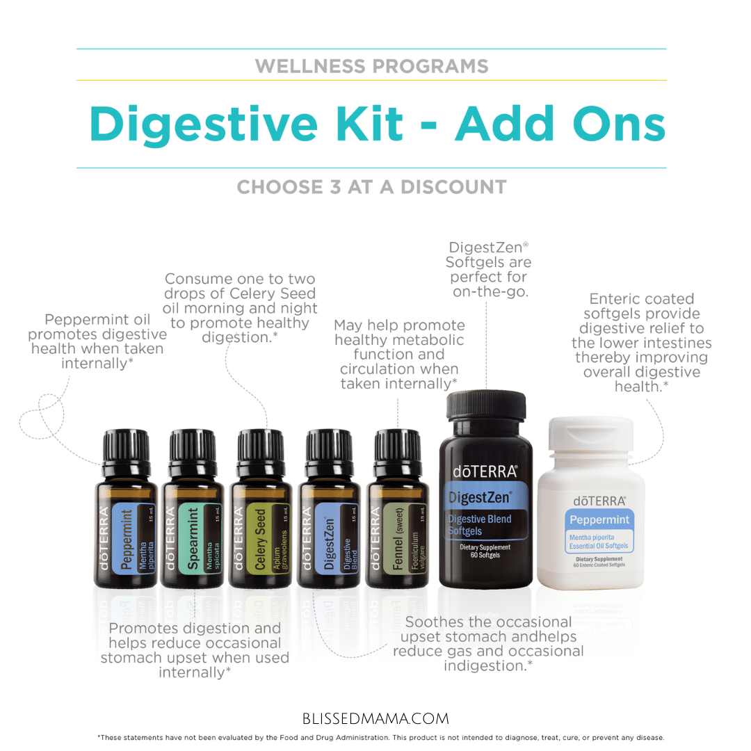 doTERRA offers adds ons that you can add to your Digestion Wellness Program kit at a discount each month; you can choose 3 of the products pictured above.