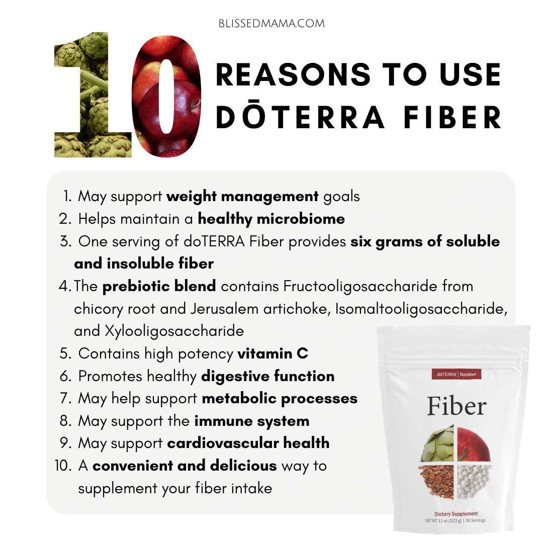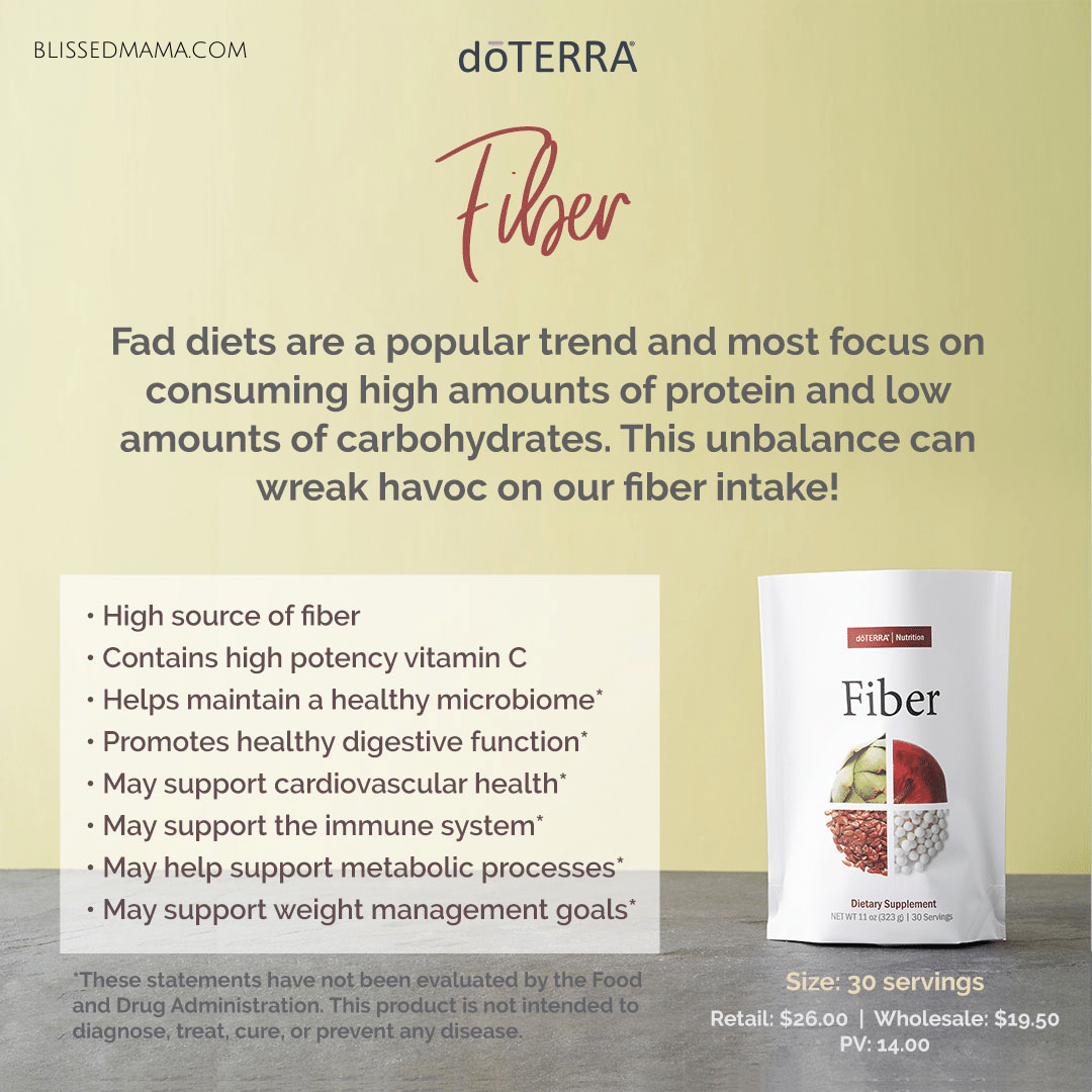 As you are working on a healthy immune system, fiber is required in building up a healthy gut flora. You also need fiber to help your digestive system get rid of the food waste your body no longer needs. doTERRA’s fiber supplement includes high potency vitamin C.