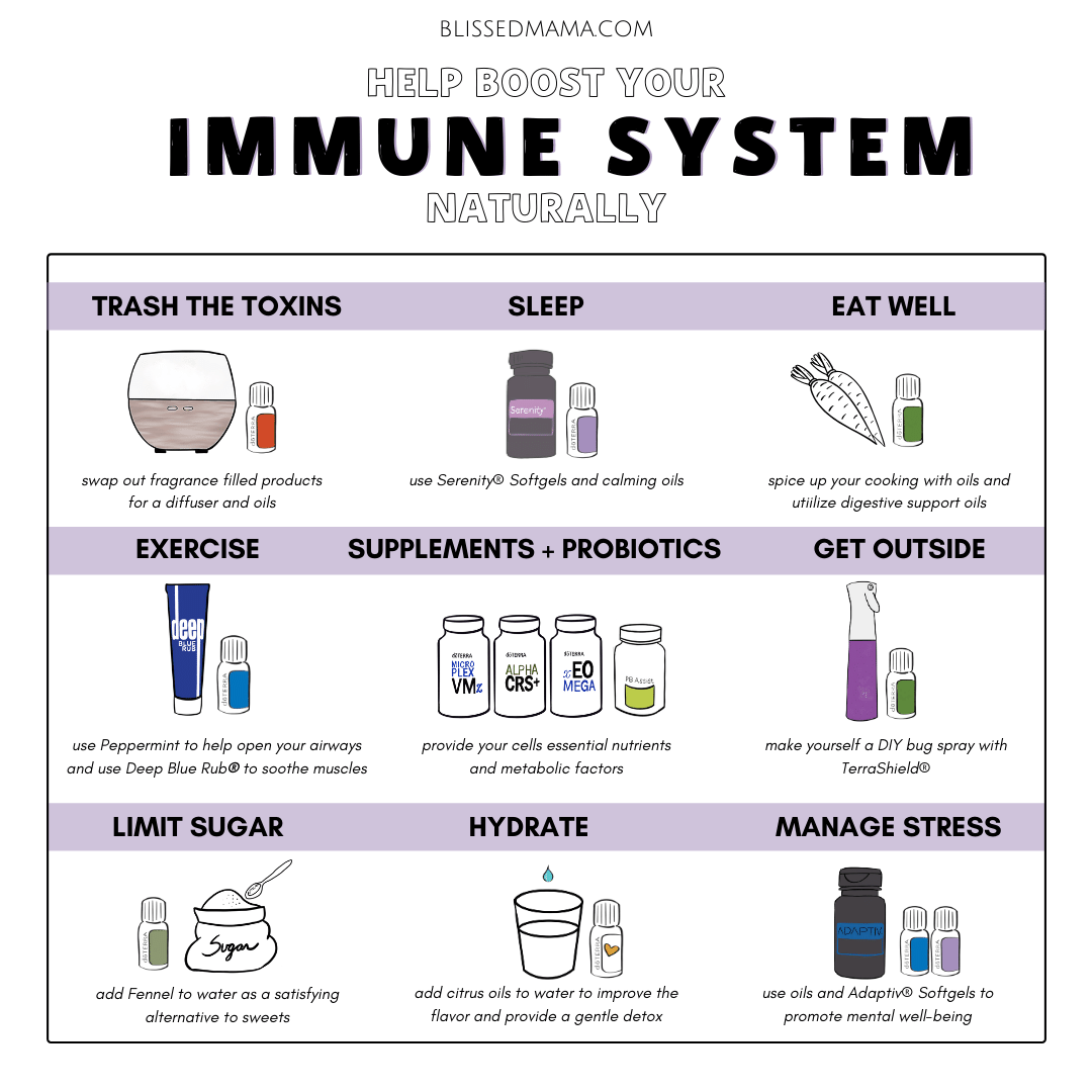 Another way to increase the health of our immune system is by increasing hydration. When we are dehydrated our bodies have trouble detoxifying and moving nutrients optimally. One thing I do every morning to stay hydrated is to add a citrus oil to a full glass of water and then down the entire glass, I do this before I eat, tea, or anything else. Adding a citrus oil to your water will kick start your digestive system for the day and get everything move and increase hydration.