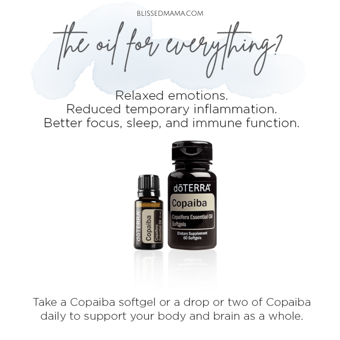 I also really love applying Serenity around my ears. Start by diffusing Serenity oil in your bedroom by your bed. If you need a little extra sleep support, you can try taking the Serenity Capsules. Serenity Capsules combined with the Copaiba Capsules creates a magical sleep combination. You may have to try different combinations to figure out what works best with the chemistry of your body.