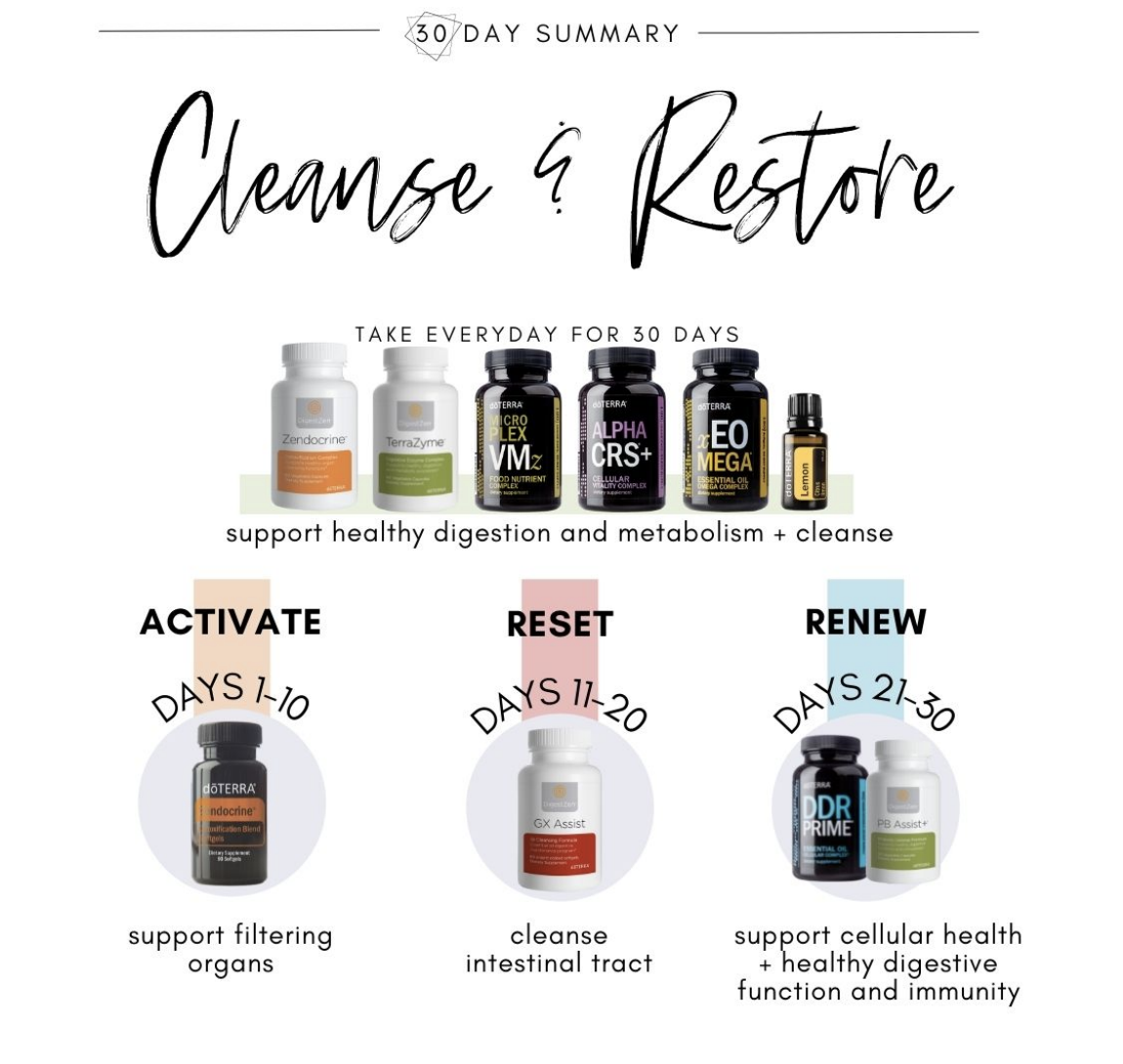 Days 1-10 you will take supplements that support the filtering organs, like the liver, kidneys, and colon. Days 11-20 you will take supplements that will cleanse the intestinal tract. Days 21-30 you will take supplements that renew and repopulate the gut microbiome and to support healthy cellular function.