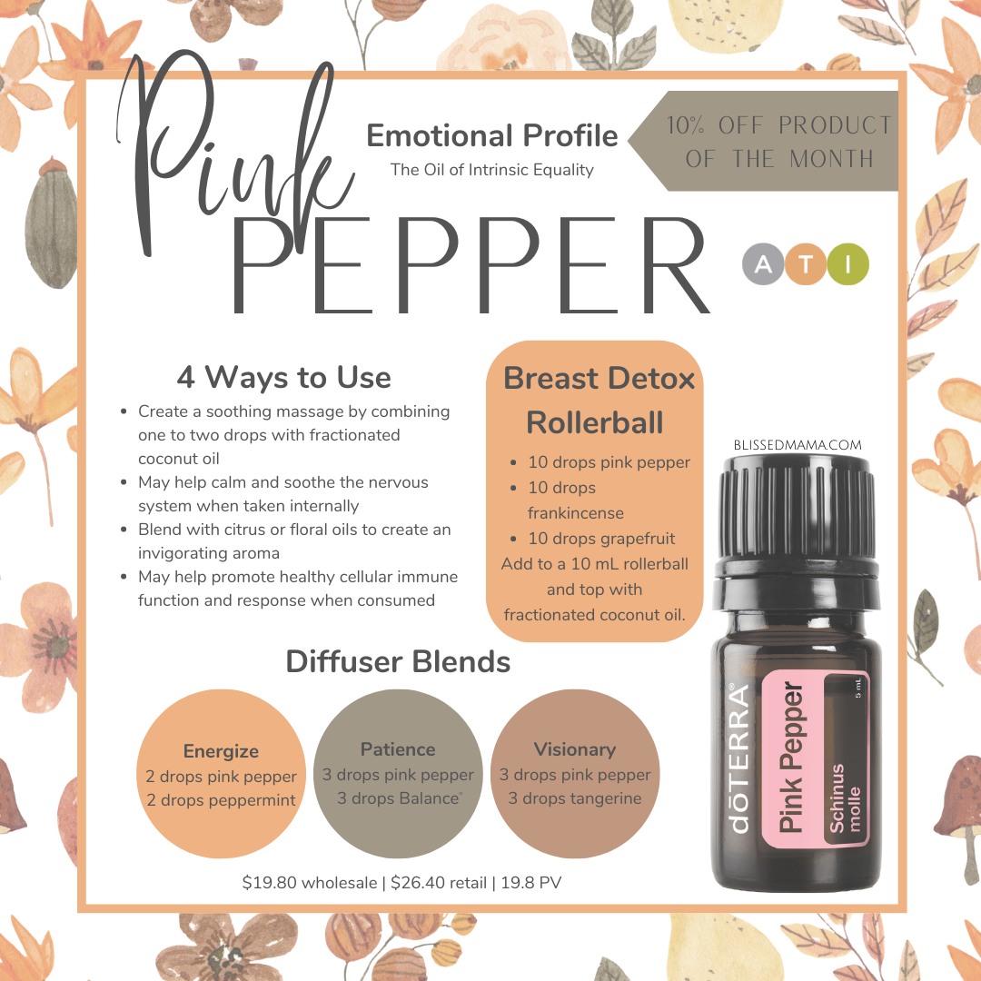 Breast health is a topic that should be discussed more often than just in the month of October, but October does serve as a good time to remind everyone to take care of their breast tissue. In this article I will be discussing the many uses of Pink Pepper essential oil and how to use this oil to support healthy breast tissue.