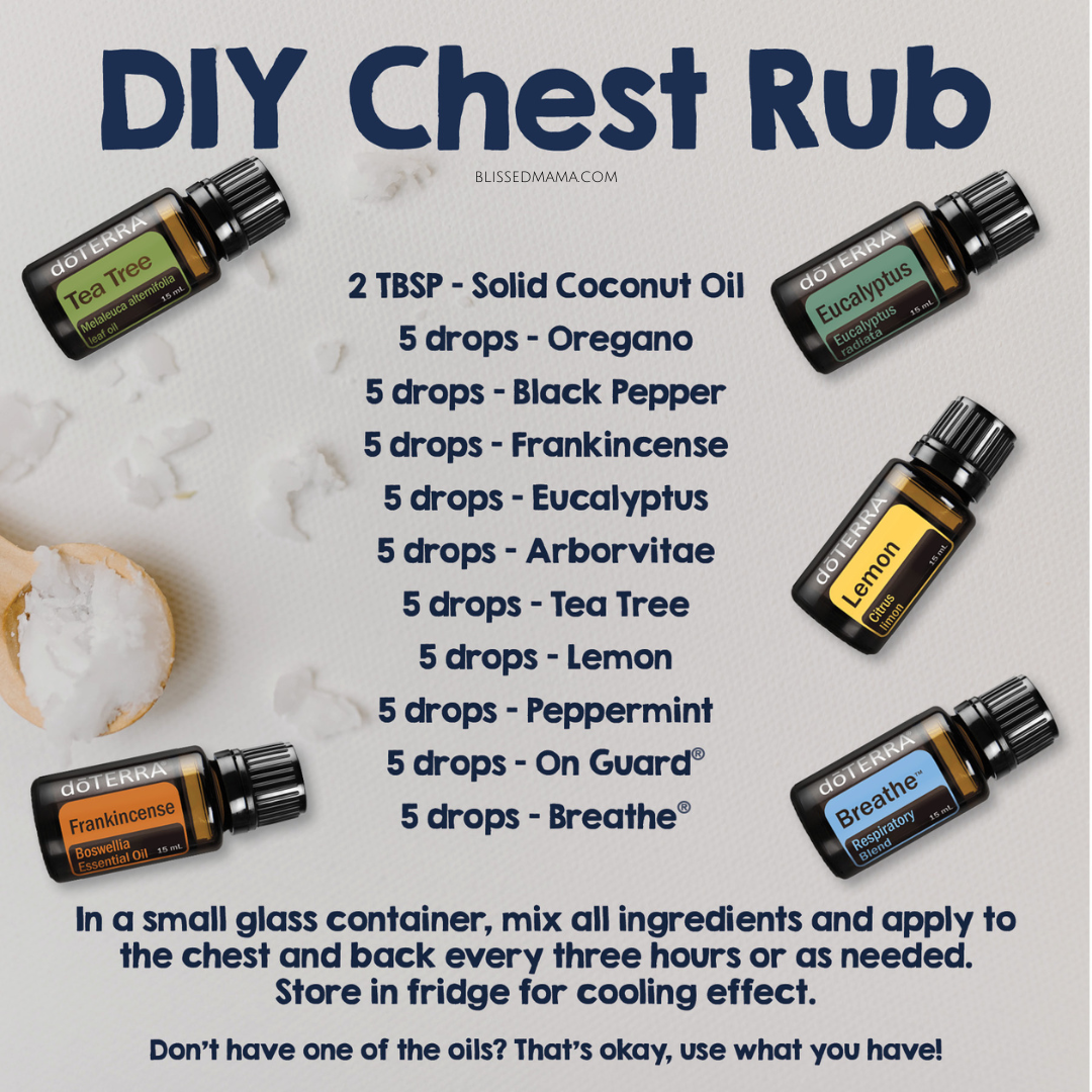 If you need something quick try using a bit of fractionated coconut oil with a drop of Eucalyptus and rubbing that on your chest, or you can use a carrier oil of your choice.