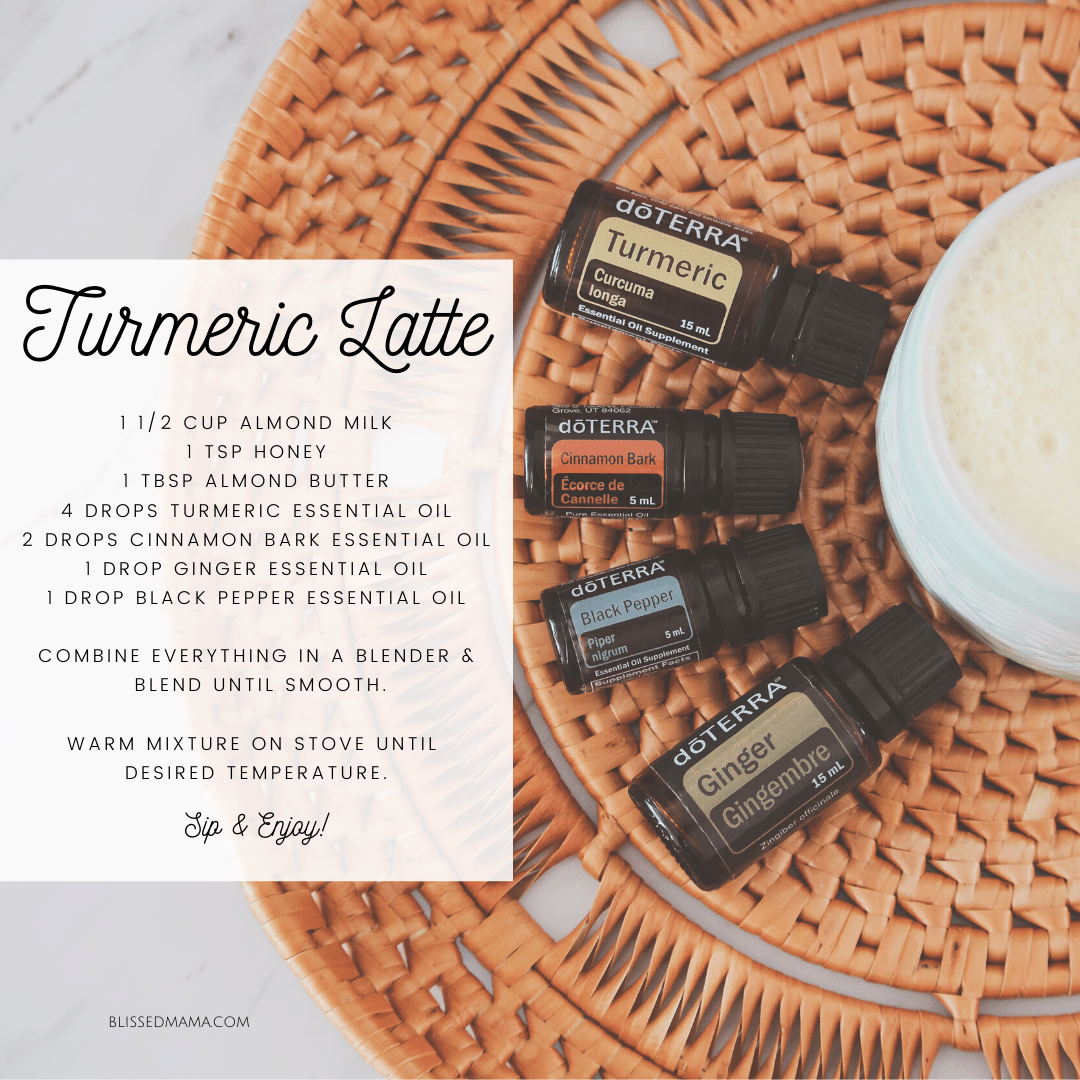 Other ways to consume Turmeric is by consuming Turmeric Essential Oil, I know many people who love to add a drop or two to their morning coffee. I personally am not a coffee drinker, but I love my Bulletproof Matcha Tea Latte in the morning. I will sometimes add a drop of Turmeric or Peppermint essential oil to my latte. You can check out the recipe by clicking the button below.