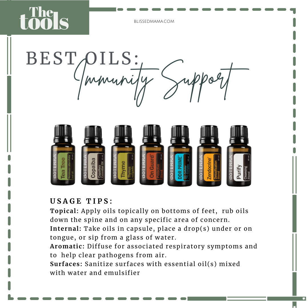 Oregano, Thyme, Arborvitae, Rose, Stronger, AromaTouch, Tea Tree, Frankincense, and On Guard