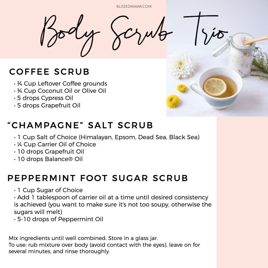 The recipes I will be talking about in this article, consist of 3 roller bottle blends, 3 room sprays, 3 sugar scrubs. If you are more of a visual learner, you can watch my video below where I demonstrate how to make a few of these recipes.