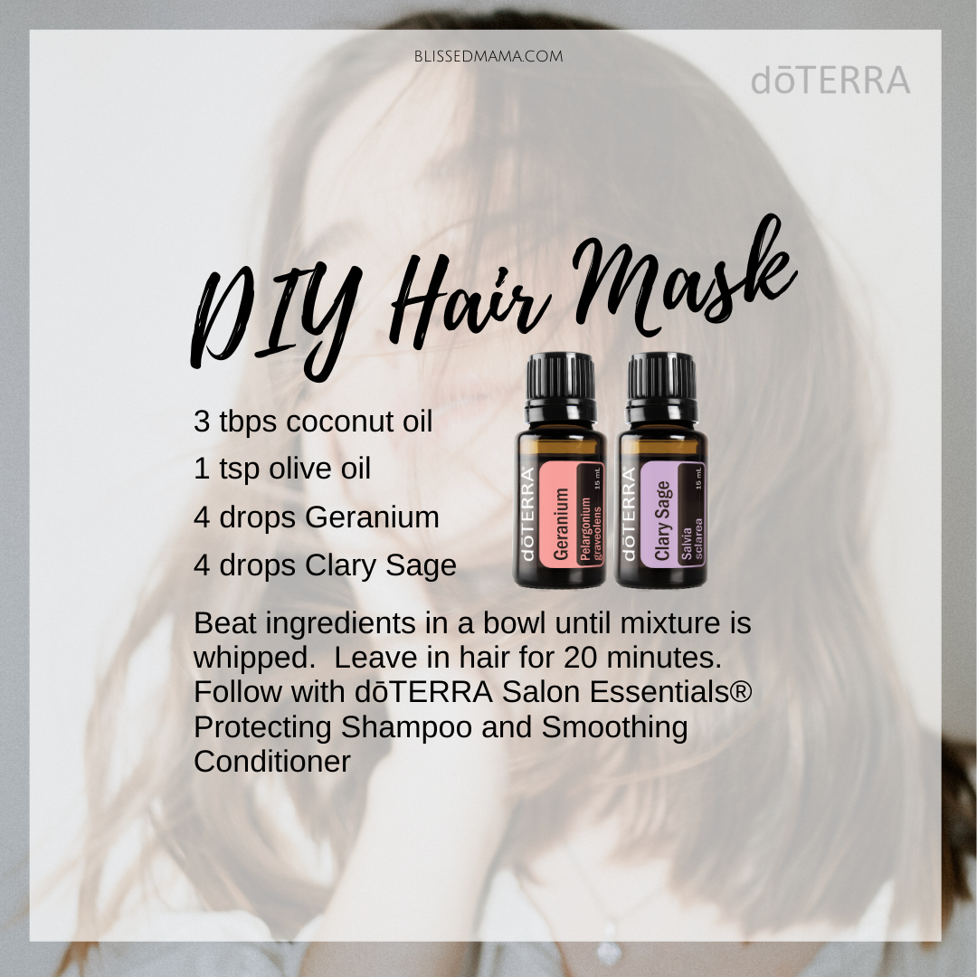 - Geranium is great for both dry and oily hair. Apply a few drops to your shampoo or conditioner bottle or make your own deep hair conditioner.