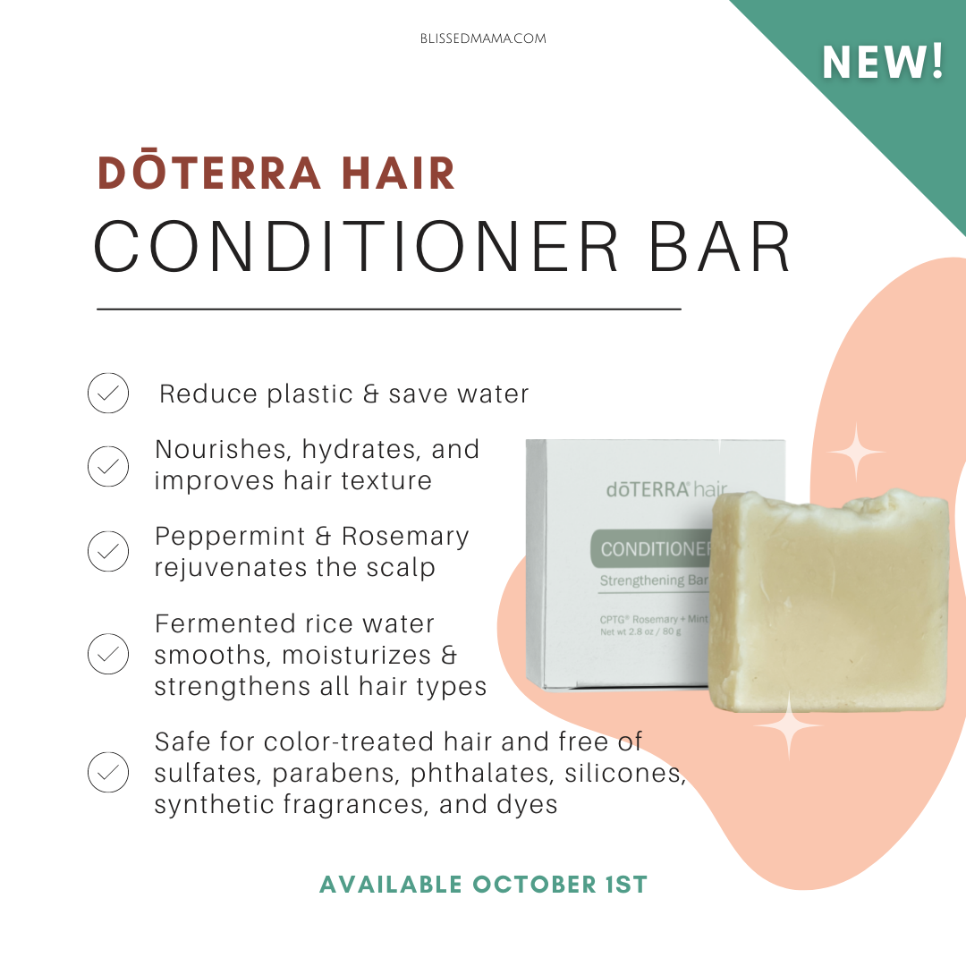 doTERRA hair Conditioner Strengthening Bar: The powers of Rosemary and Mint essential oils combine with other safe, natural ingredients for a fresh bar that can tame and rejuvenate your wet hair.
