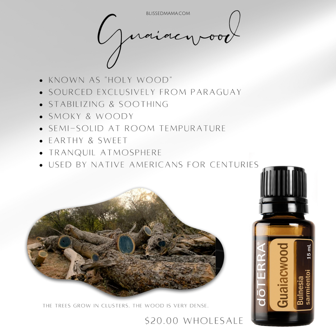 Guaiacwood 15 mL: This essential oil features a rich aromatic combination of earthy and sweet to give you the tranquil atmosphere you need in meditation practices.