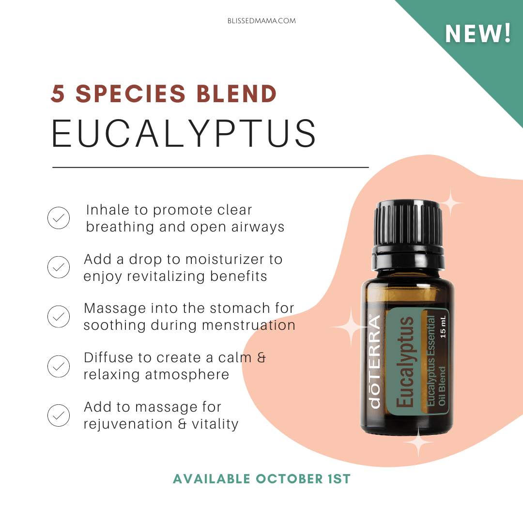 Eucalyptus 15 mL: The spa-like benefits of this cleansing essential oil can be experienced like never before. doTERRA has blended several species of eucalyptus together in a new, powerful formula.