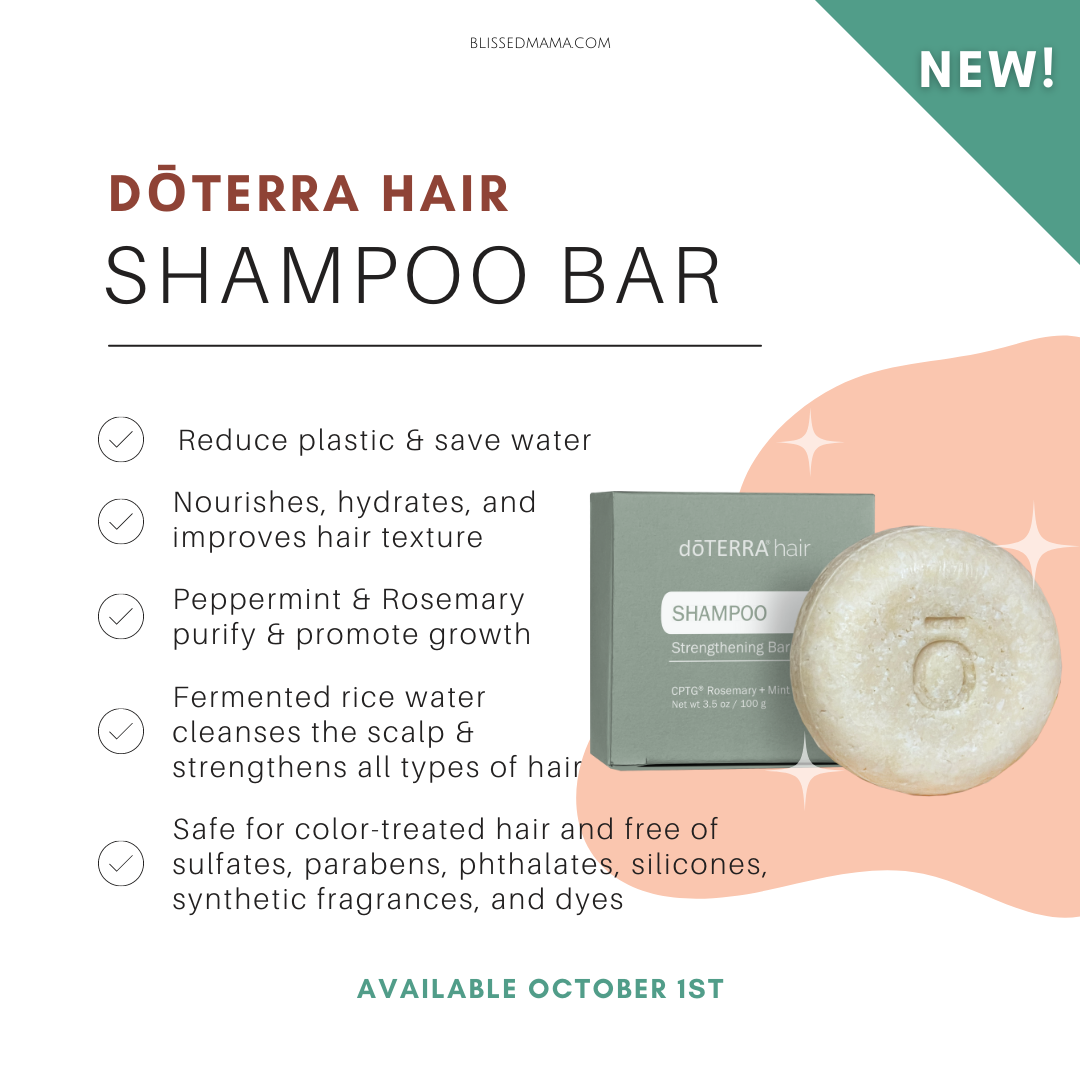 doTERRA hair Shampoo Strengthening Bar: Infused with Rosemary and Mint essential oils, this bar is designed to nourish and hydrate all hair types with beneficial ingredients.