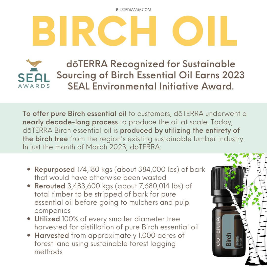 For years, Birch essential oil remained an enigmatic gem, accessible only as a gift in convention kits. Its devoted enthusiasts, me included, yearned for its regular availability. However, doTERRA encountered hurdles in sourcing it sustainably. Nevertheless, this year signifies a significant milestone as doTERRA achieved the remarkable feat of becoming the first company to commercially produce 100% pure Birch essential oil.