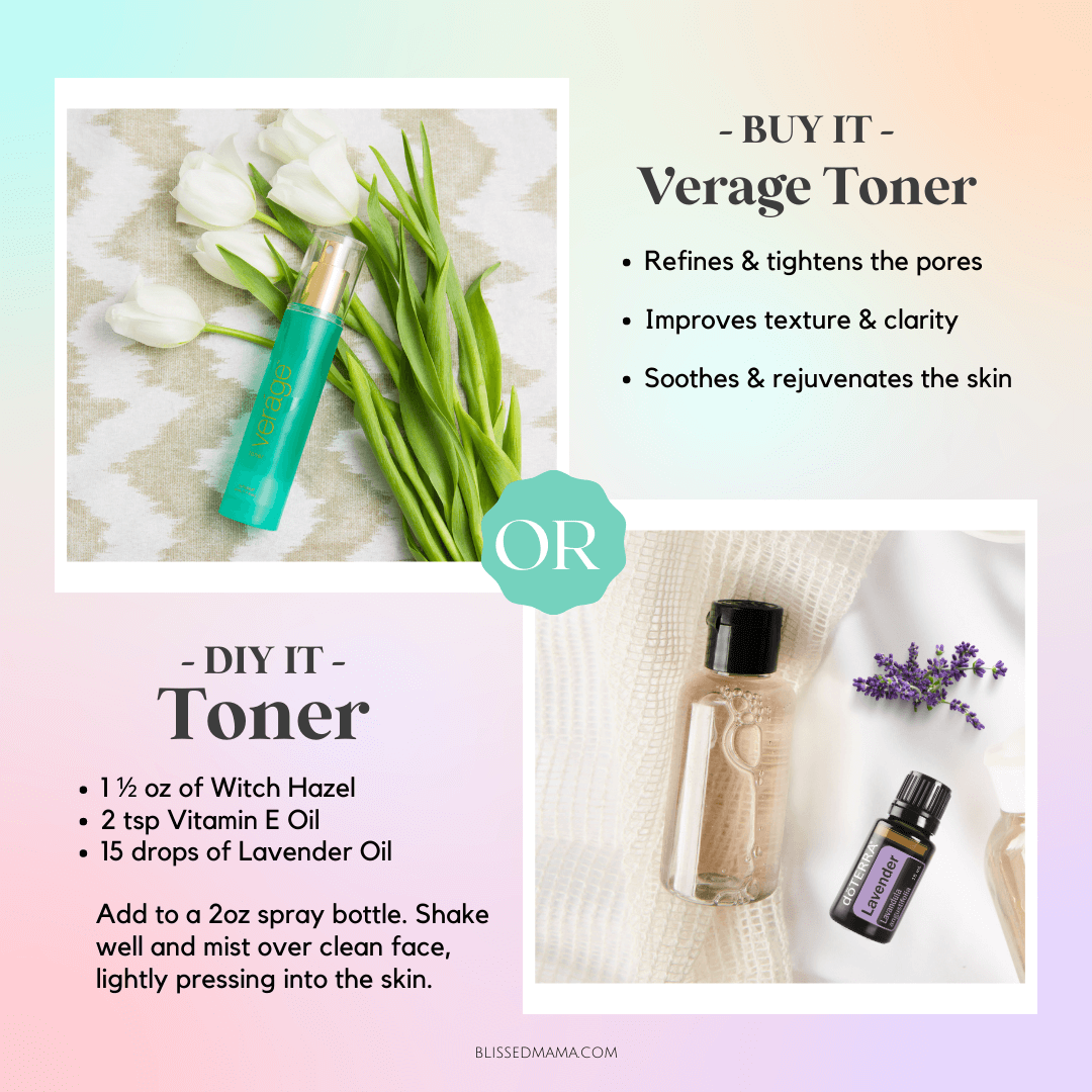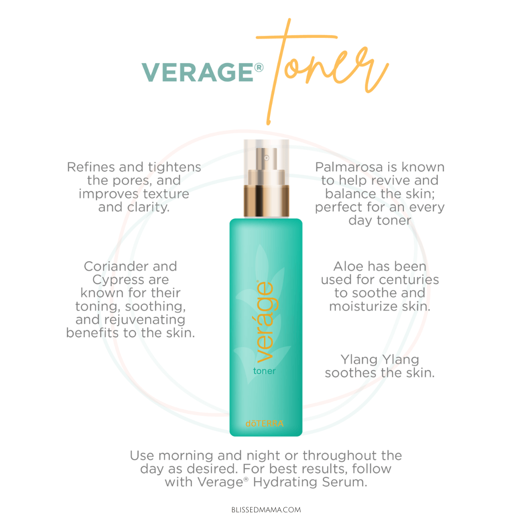 To use the Verage Toner, simply mist it on your face and neck. It can also be used throughout the day to refresh and hydrate the skin.