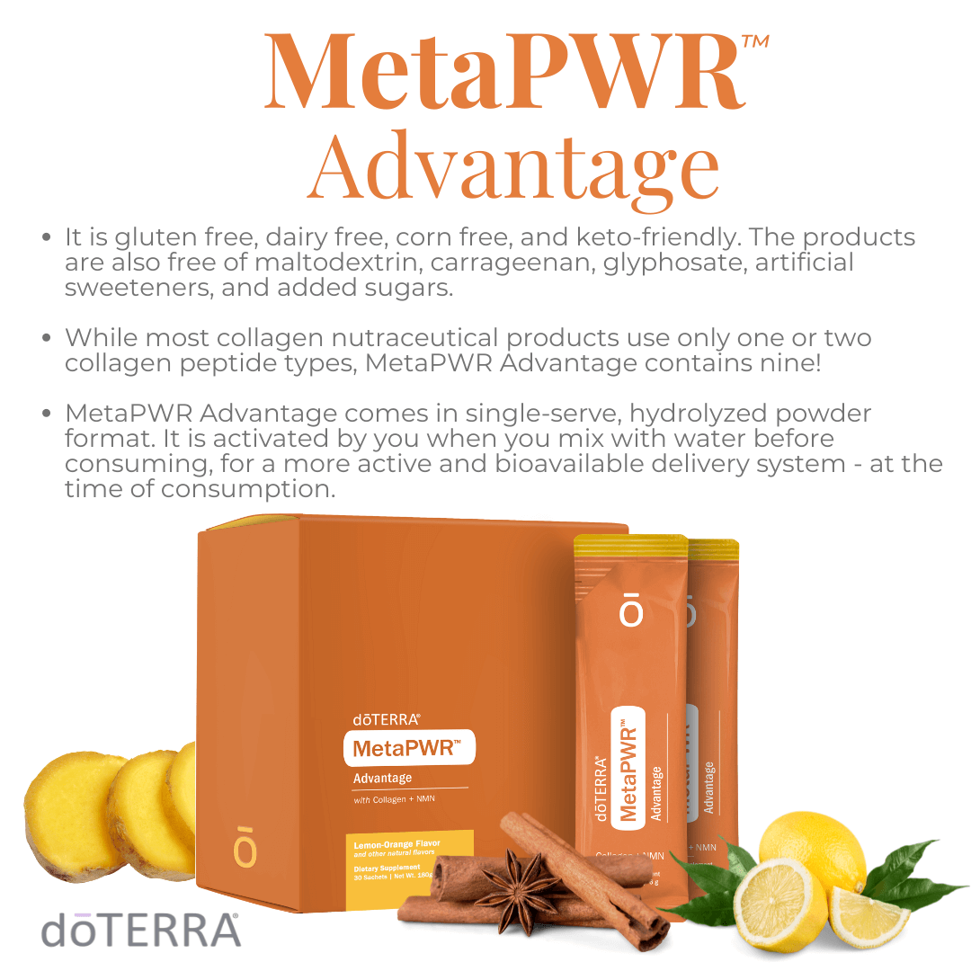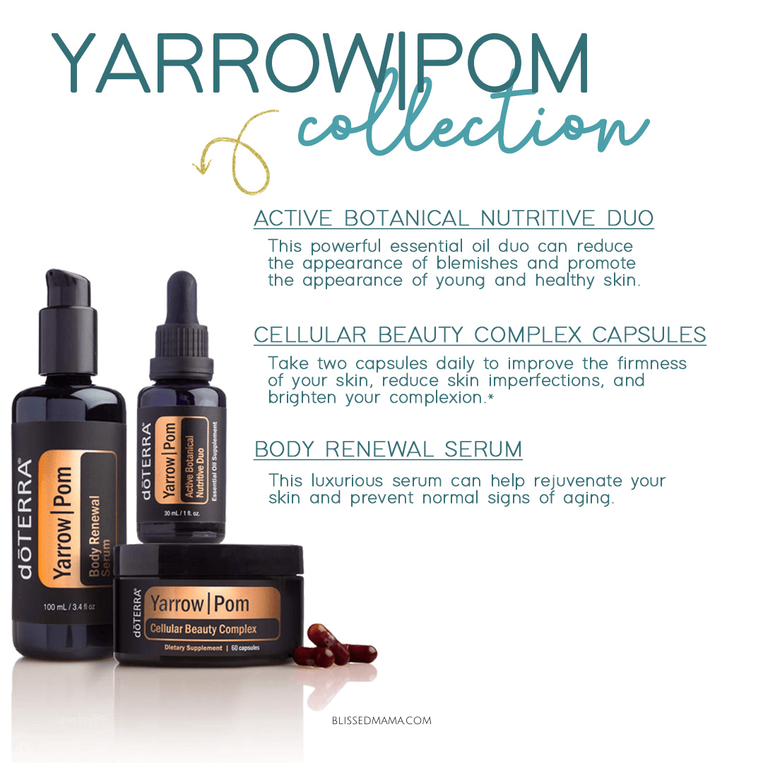 doTERRA also offers two supplements that can support your skin health from the inside out. The Yarrow|POM Beauty Capsules and the MetaPWR Advantage Collagen are both designed to provide the nutrients your skin needs to look and feel its best.
