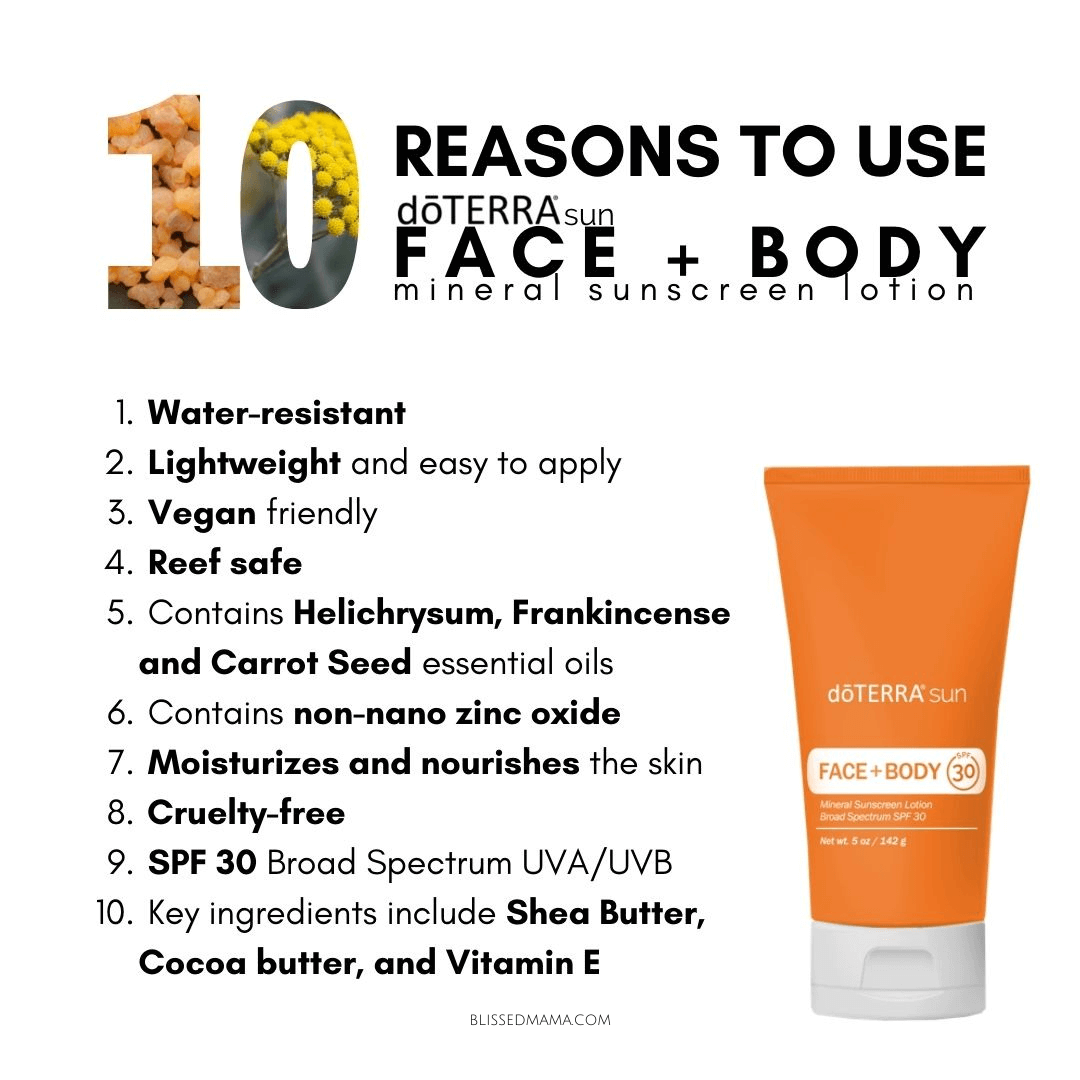 By incorporating a mineral-based sunscreen like the doTERRA Mineral Sunscreen into your skincare routine, you can help to protect your skin from sun damage while also enjoying the added benefits of essential oils and natural ingredients.