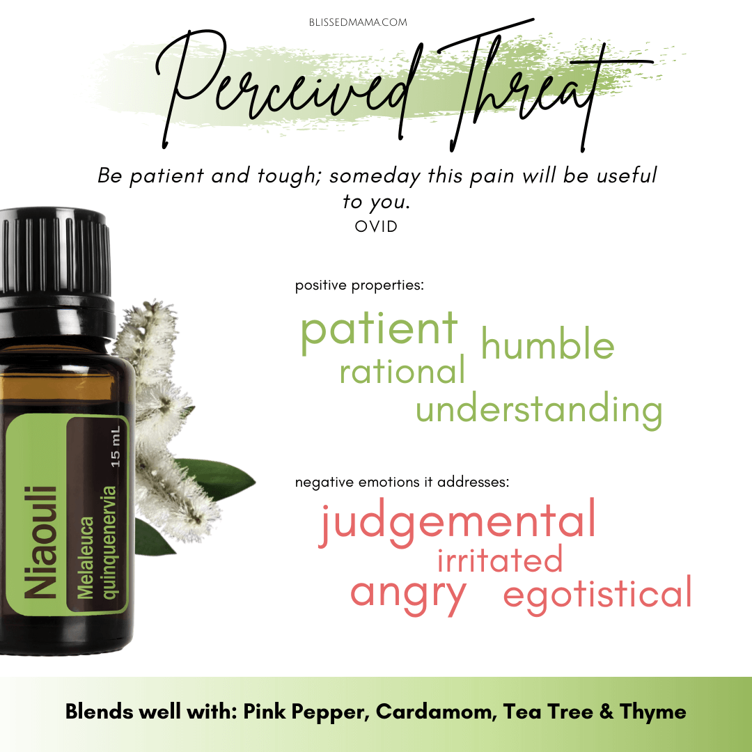 One of the unique aspects of essential oils is that they can have both physical and emotional benefits. Niaouli is the oil of Perceived Threat. This oil has a grounding and calming effect on the mind, to help reduce feelings of stress and anxiety. It can also help to promote mental clarity and focus – this would be great to use whenever you need to concentrate on a task or project. Additionally, Niaouli essential oil is believed to have a purifying effect on the energy in a room, helping to create a peaceful and harmonious environment.