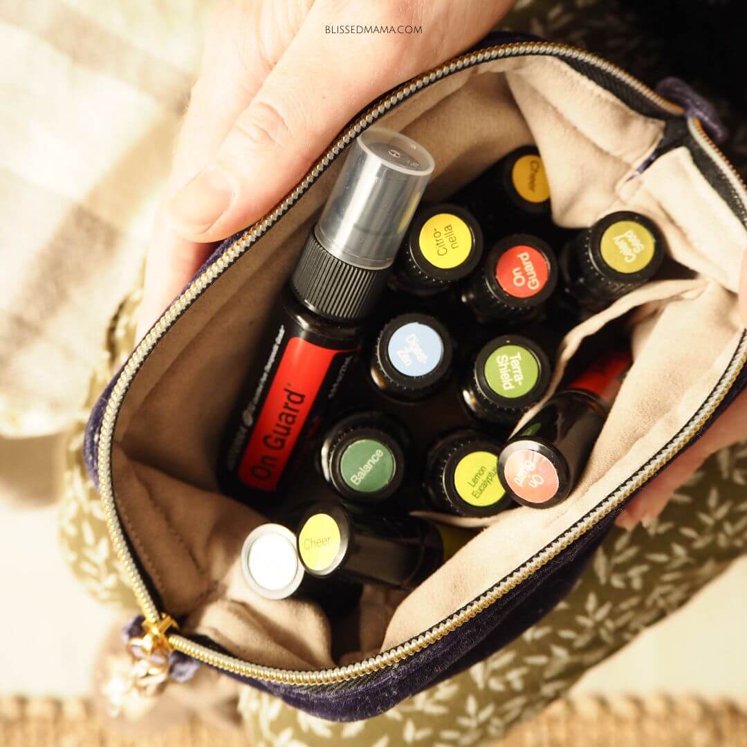 One indispensable item that has revolutionized the way I travel with essential oils is the doTERRA Dram Keychain. This is a zippered pouch that contains 8-dram vials. It is perfect for if you want to take essential oils, but you don’t want to take full bottles of everything. You can put your favorite essential oils in the vials, place the vials in the keychain pouch, and boom you have your own mini kit that is perfect for travel. I recommend getting the doTERRA label stickers, so that you can label each vial. Throw this keychain in your purse and use it for everyday use as well as when you travel.