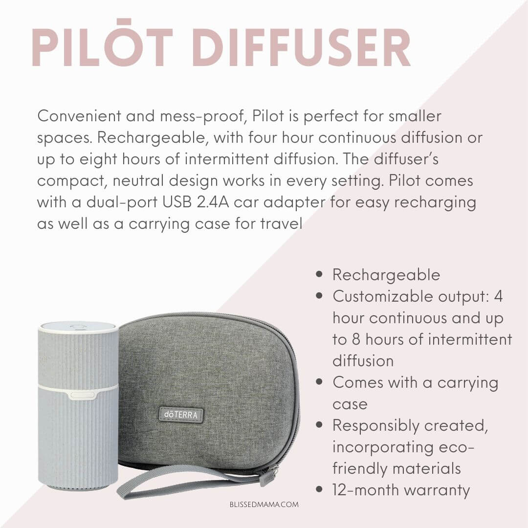 Even when I am only traveling with only a backpack, I always take a diffuser with me. The Pilot Diffuser is perfect for traveling, in fact it was made for that purpose. It is designed to be a car diffuser, so it is slim enough to fit into a cup holder.