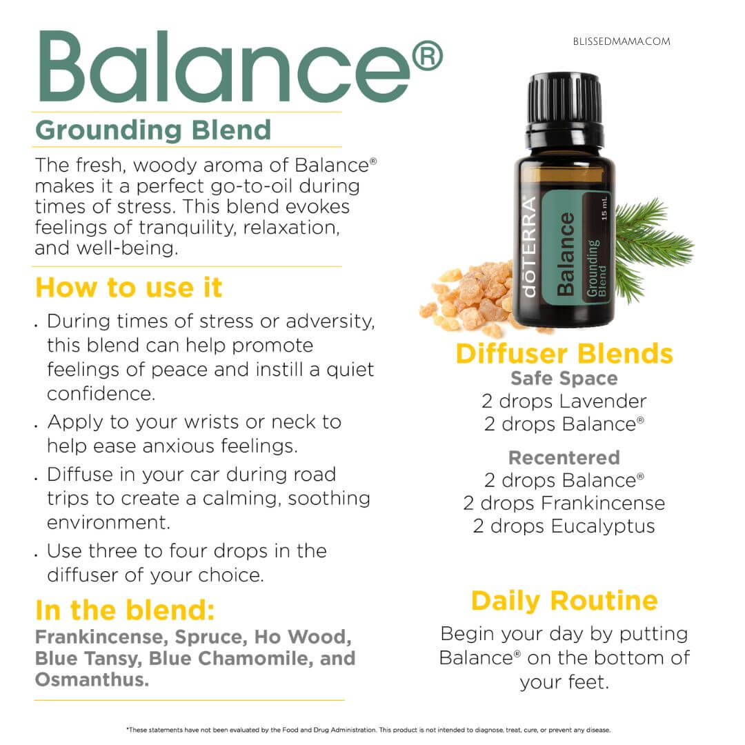 Traveling can sometimes be stressful, which is where Balance essential oil blend comes in. It provides emotional support and helps with anxious feelings. Its earthy aroma is grounding and soothing. Applying it behind the ears or on pulse points can help promote a sense of calmness and balance while on the go.
