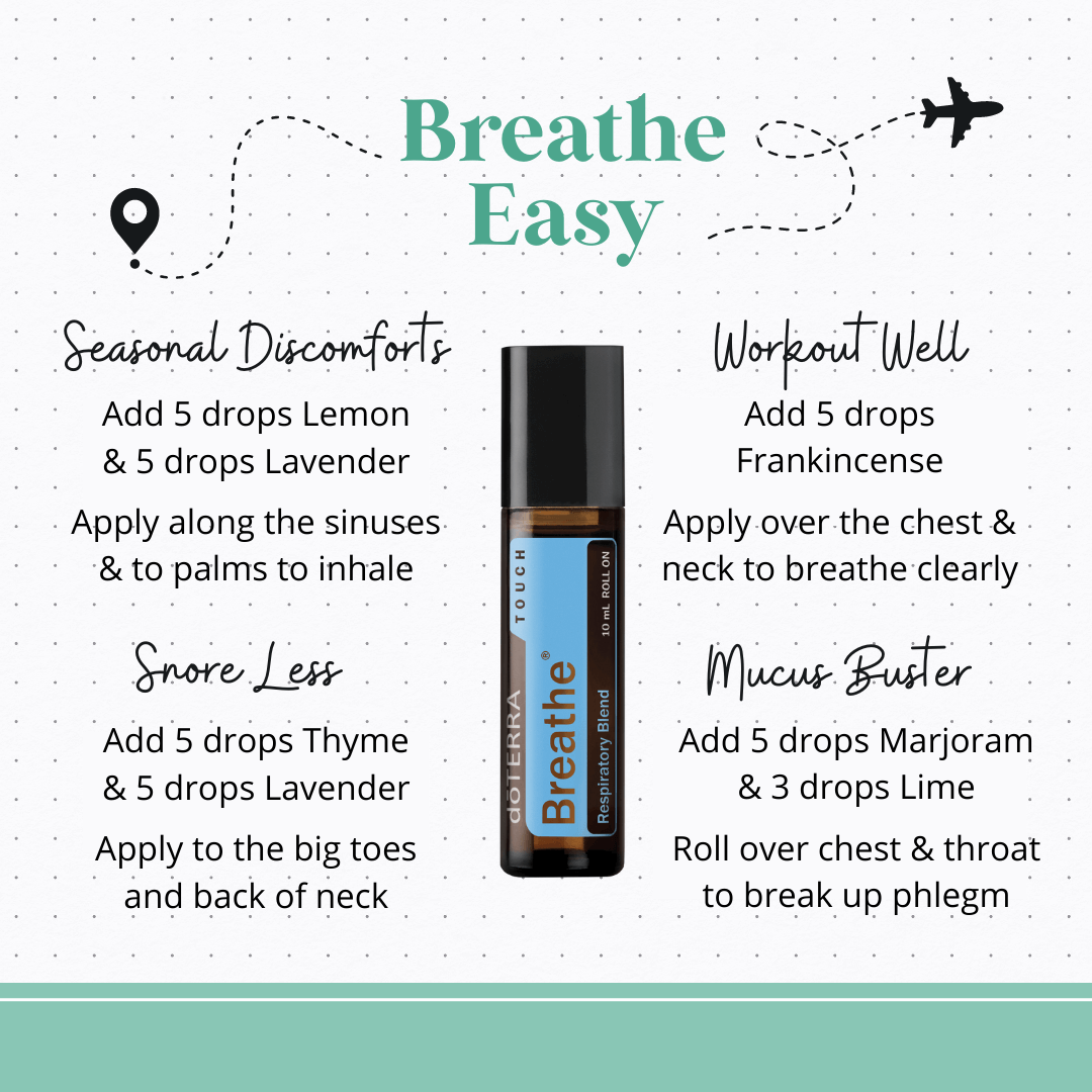 Breathe oil helps to open airways and promotes clear breathing. Whether you're exposed to pollution, or someone is feeling under the weather, Breathe oil can be applied to the chest, bottoms of the feet, or used in a portable diffuser. Speaking of which, doTERRA’s portable chargeable pilot diffuser is a great addition to your travel essentials. It's compact and perfect for diffusing oils in hotel rooms or even in your car.