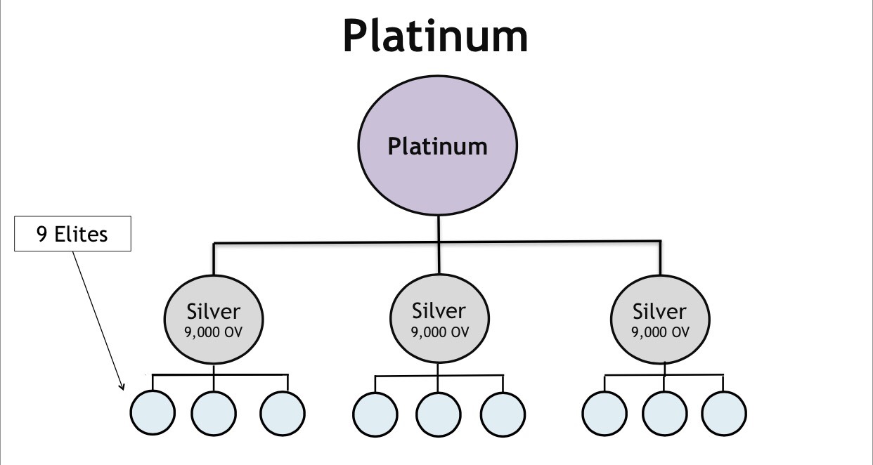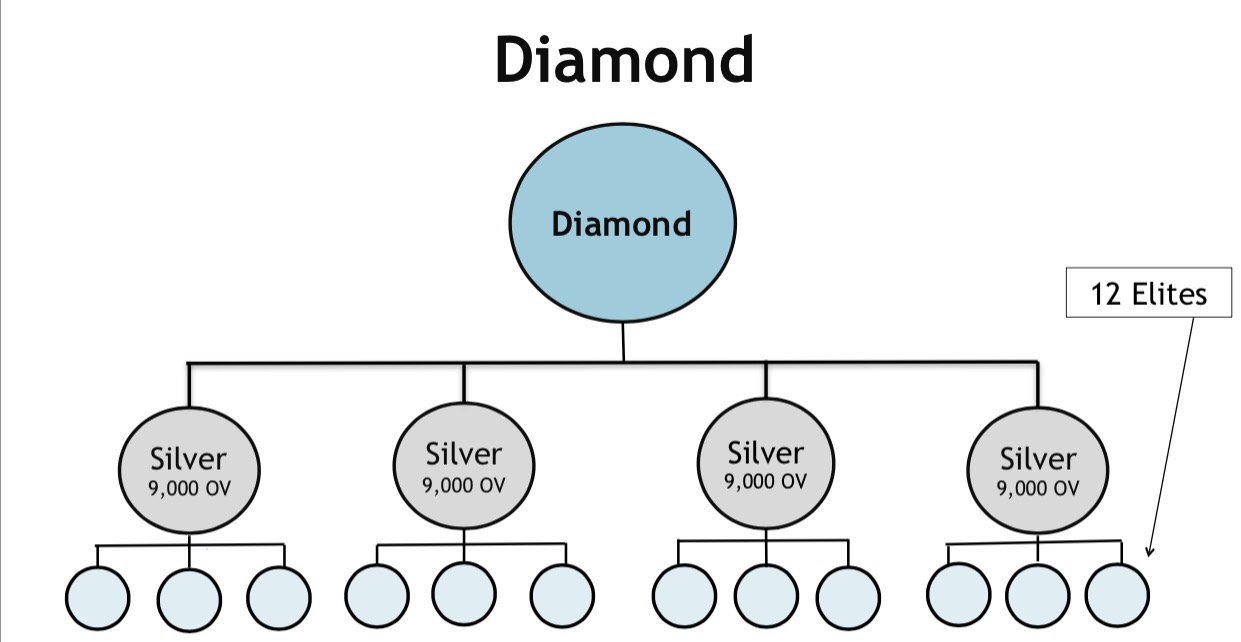 If you create 3 Elites you are SILVER (average mature monthly income is $2,197),9 Elites you are PLATINUM (average mature monthly income is $9,391),12 Elites you are DIAMOND (average mature monthly income is $16,733).
